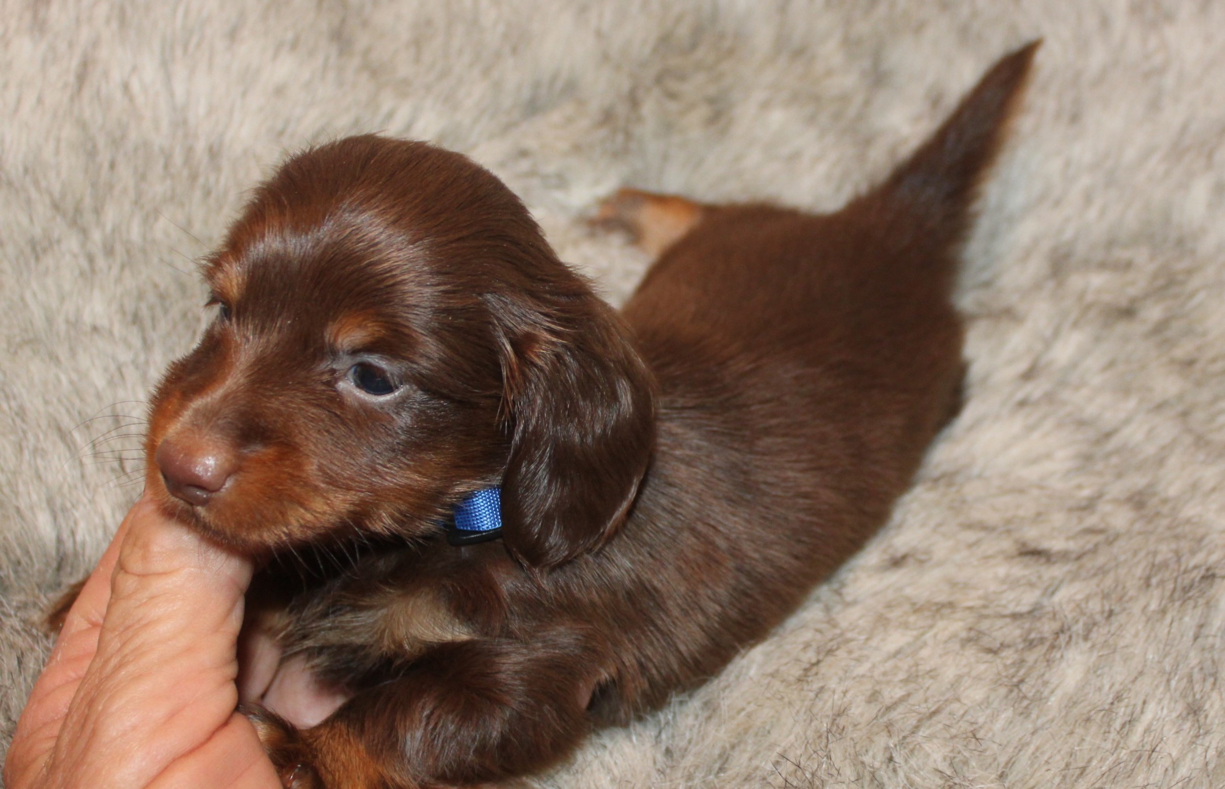 Call us at (903) 371-8424 for more information about our long-haired mini Dachshunds or to place a deposit on your favorite.