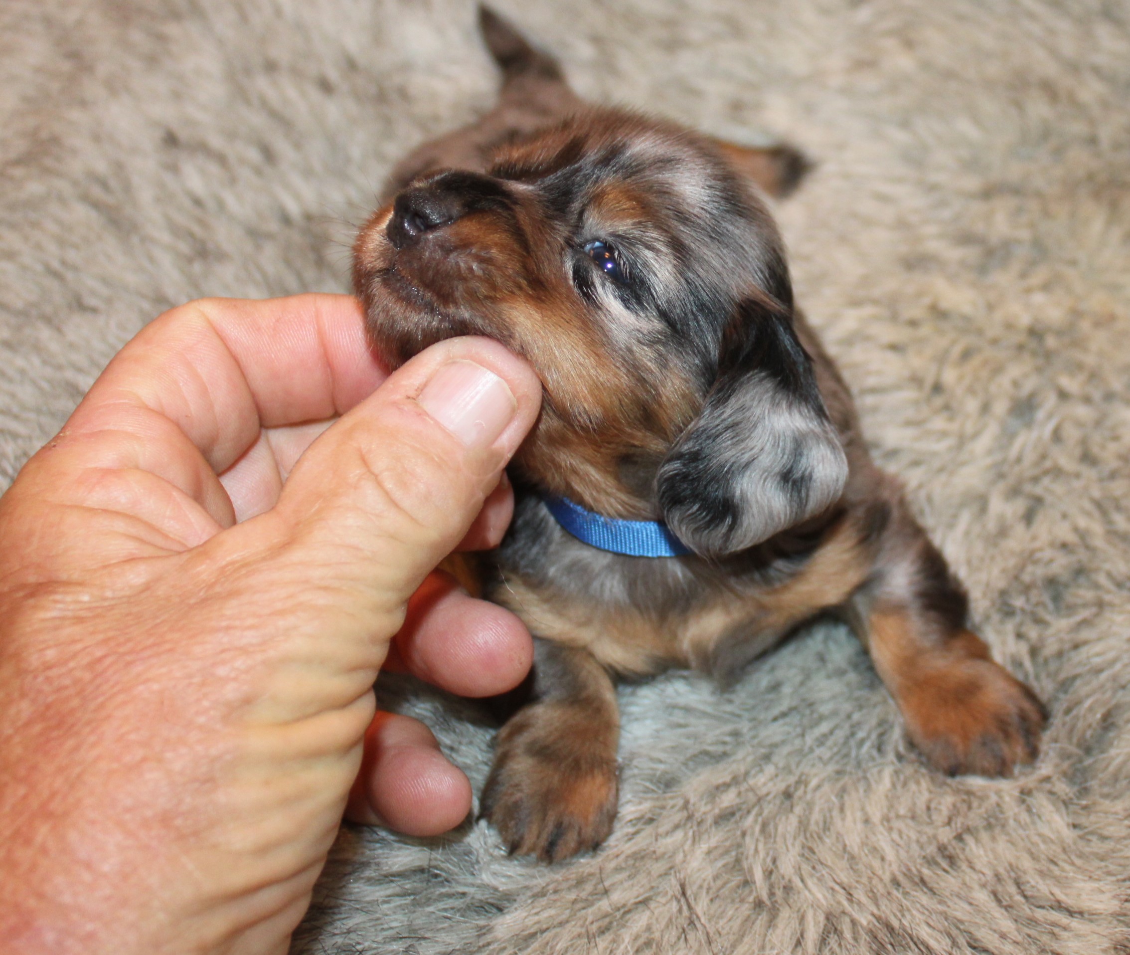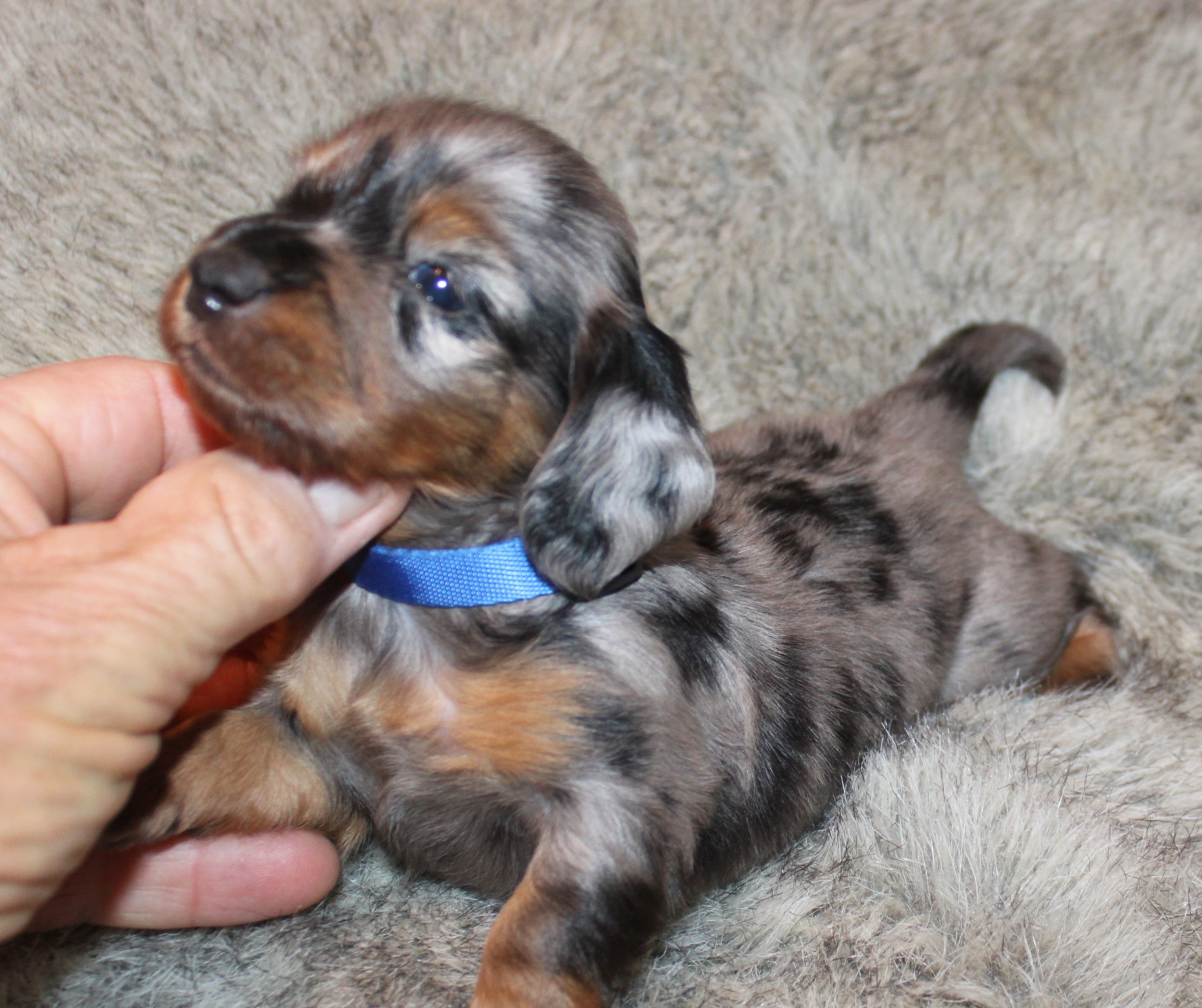 Male, black & tan, silver dapple, long coat